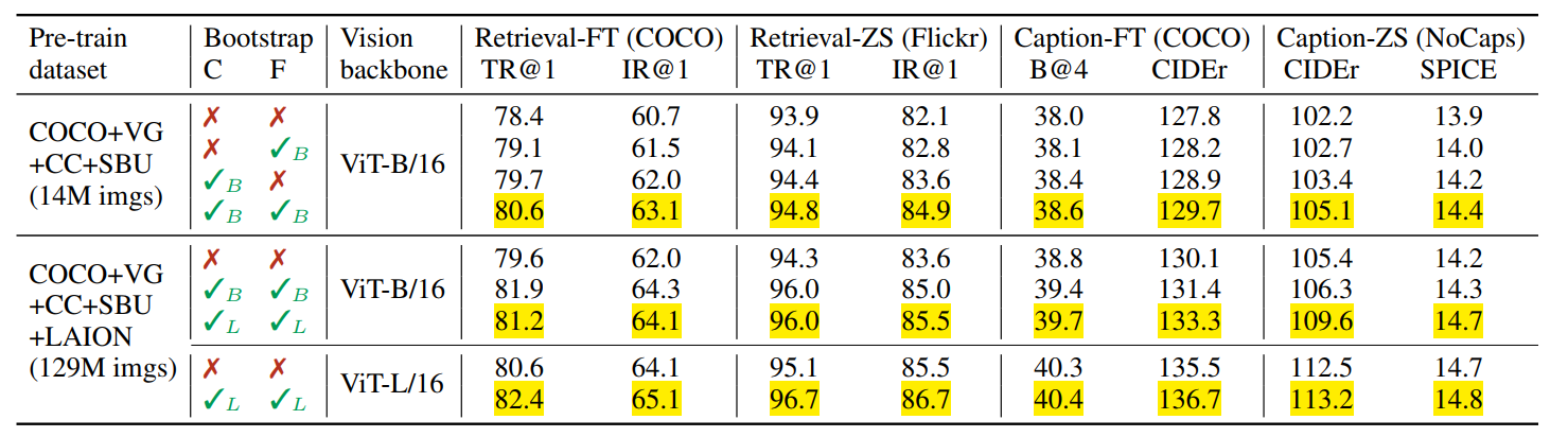 이외에도, 아래와 같은 다양한 실험을 통해 BLIP의 성능을 입증하였습니다.
